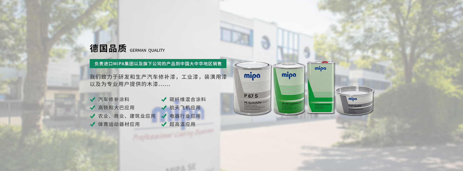 米帕(深圳)涂料有限公司 米帕(深圳)涂料有限公司是MIPA SE的中國分公司,成立于2013年,目前公司位于深圳市龍崗區(qū),主要負(fù)責(zé)進(jìn)口MIPA集團(tuán)的產(chǎn)品到中國大陸銷售。MIPA集團(tuán)總部坐落于德國艾森巴赫,是一家快速發(fā)展的中型企業(yè),主要生產(chǎn)各類清漆和油漆。我們在德國以及境外擁有超過8個(gè)以上的生產(chǎn)基地,我們致力于研發(fā)和生產(chǎn)汽車修補(bǔ)漆,工業(yè)漆,裝潢用漆,以及為專業(yè)用戶提供的木漆。Mipa 集團(tuán)目前全球員工人數(shù)已超過1200名,我們的員工正在為全球各大洲超過100多個(gè)國家的子公司和客戶群體運(yùn)送產(chǎn)品。